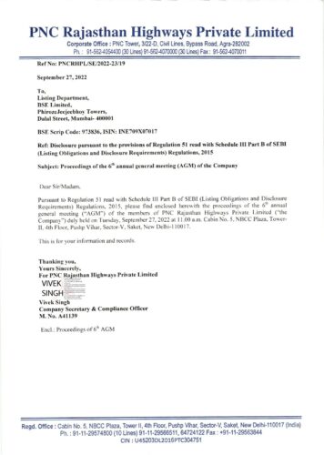 Compliance-Reg. 51-Proceetlings Six AGM